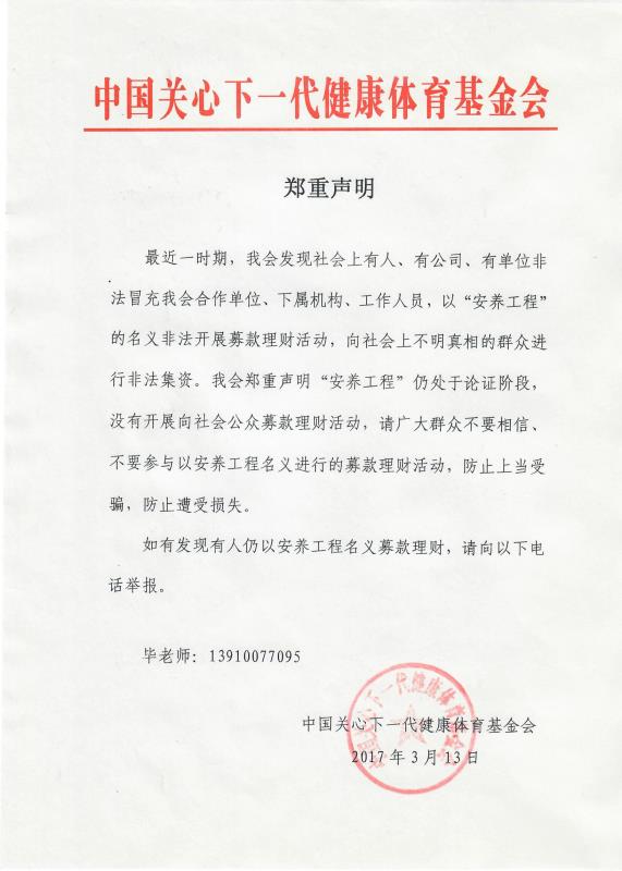 关于基金会对“安养工程”仍处于论证阶段的郑重声明