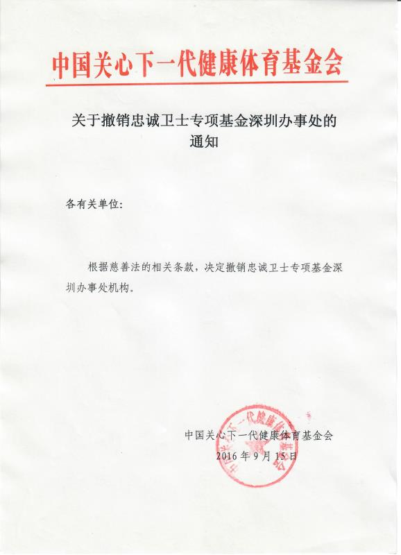 关于撤销忠诚卫士深圳办事处的通知