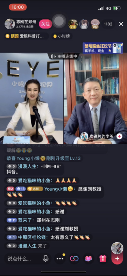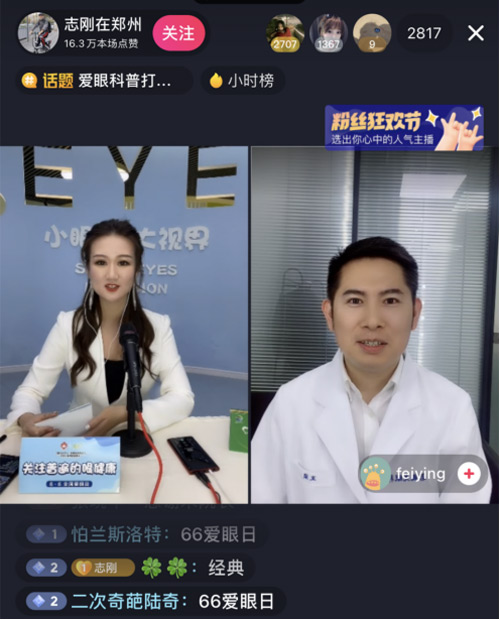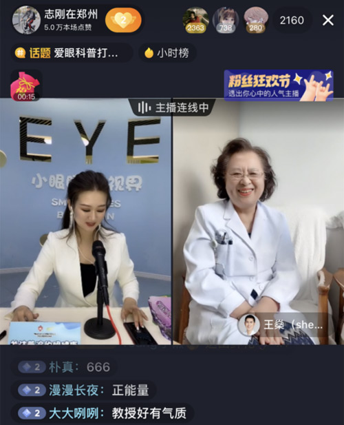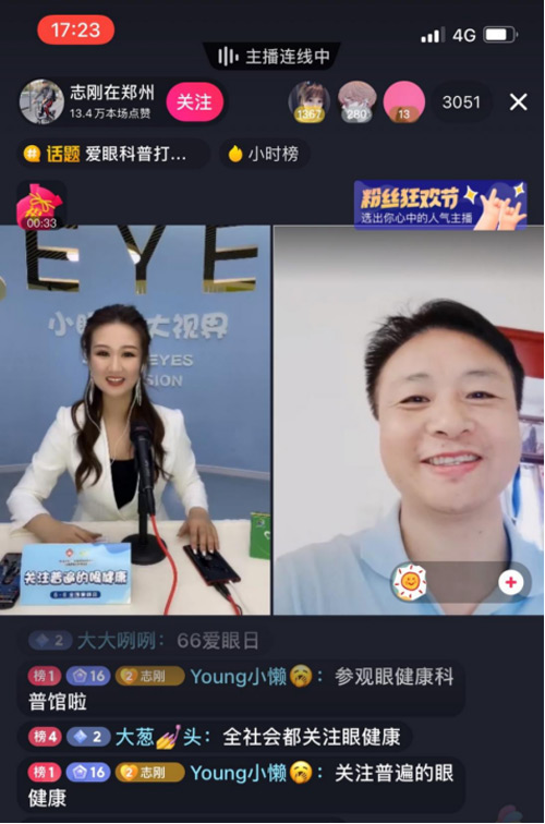 直播现场邀请到温州医科大学眼健康科普馆馆长张秋霞、好视力爱眼专项基金秘书长杨静为苏丹讲健康、志刚在郑州、TIMTIME、郑州同城探店、郑州酒先锋网红景点、河南主持人sasa等抖音达人颁发了“爱眼公益推行官”荣誉证书。呼吁更多人积极参与科普公益,助力眼健康发展。