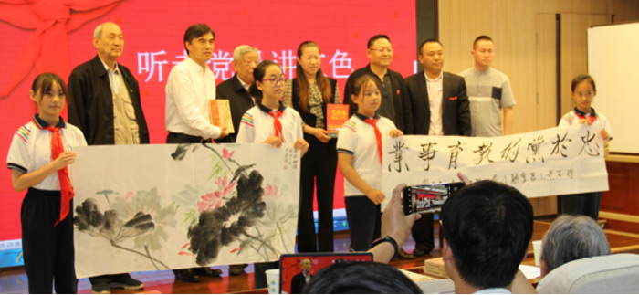值此中国共产党成立一百周年之际,为进一步贯彻落实习近平总书记在党史学习教育动员大会上的讲话精神,发挥五老优势,教育引导全党发扬红色传统、传承红色基因,始终保持革命者的大无畏奋斗精神,抓好青少年党史学习教育、着力讲好党的故事、革命故事、英雄故事,厚植爱党、爱国、爱社会主义的情怀,让红色基因、革命薪火代代相传。以聆听老一辈革命家亲历讲述红色故事、馈赠红色书籍、书画作品、组织少先队员观看优秀电影、展示师生风貌、共建和谐校区为契机,弘扬中华民族优秀传统文化在新时代构建和谐校区,忆党史、庆六一活动如期举办。