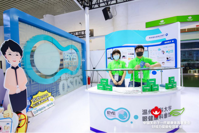 其中,由温州医科大学联合中国关心下一代健康体育基金会好视力爱眼专项基金,共同参展的眼健康科普公益展馆(A205展位)“火”了,秒变“爱眼公益网红打卡地”,吸引了众多专家大咖、参观者的打卡互动,大家纷纷为眼健康科普公益发声。