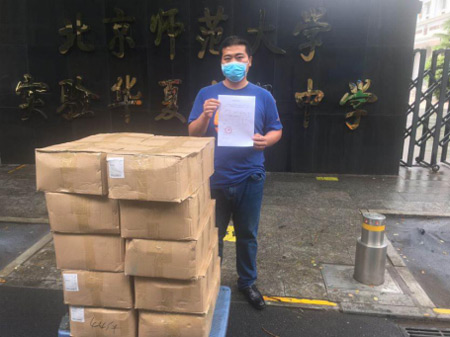 杭州精成博济公司赵甲第董事长向中国关心下一代健康体育基金会何副秘书长完成捐赠物资交接后,基金会第一时间将防疫物资发往各受赠学校。接受捐赠的学校有:云南省丽江市宁蒗彝族自治县大兴镇贝尔中学、四川省遂宁市船山区永兴镇遂宁六中、北京社会管理职业学院、甘肃省白银市平川区水泉镇牙沟水小学、北京市海淀区英才幼儿园、湖南省怀化市沅陵县思源实验学校、河南省卫辉市庞寨乡庞寨完全小学等全国三十多所学校。