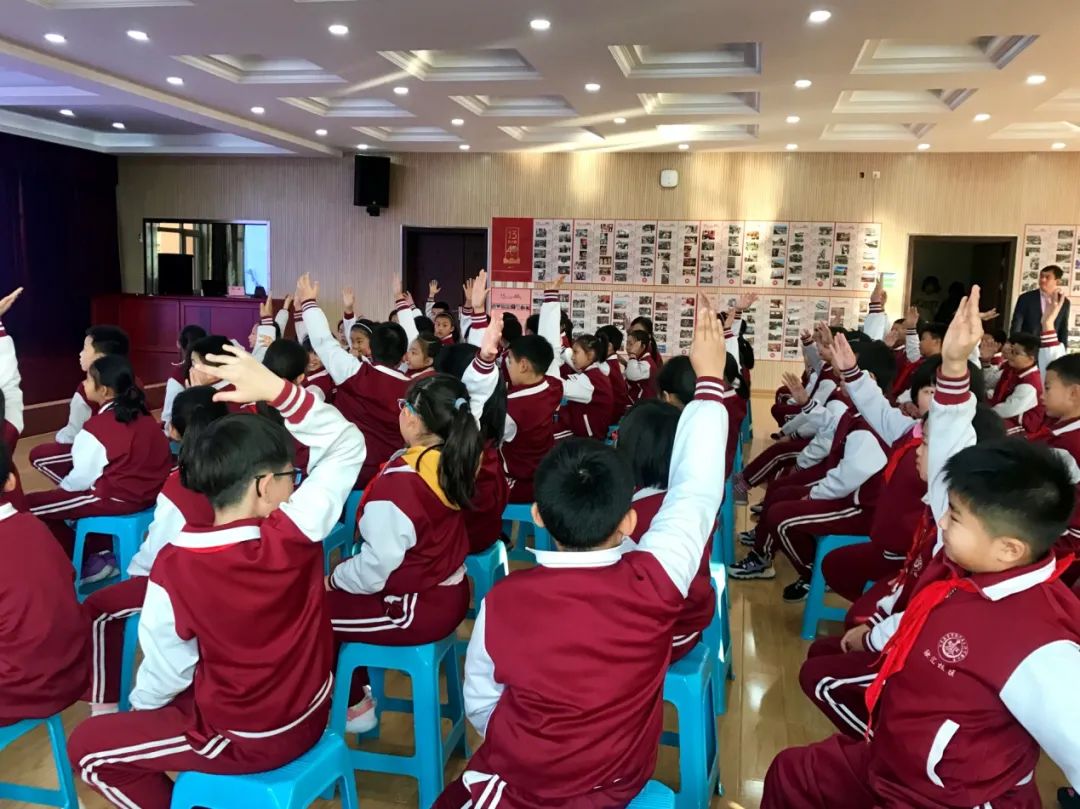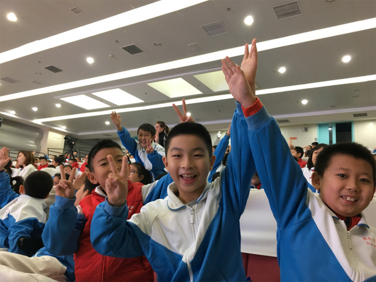 北京教育学院附属大兴实验小学的同学们在齐白石艺术讲座中踊跃举手回答问题