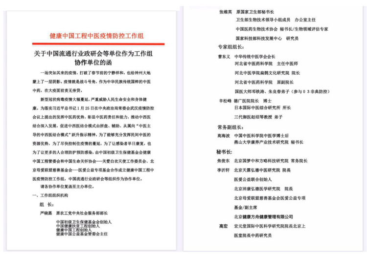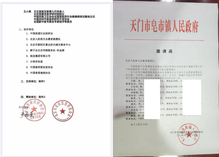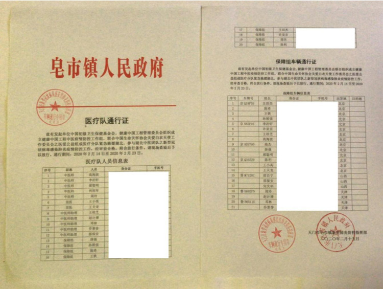 一场突如其来的疫情,打破了春节前的宁静祥和,也给神州大地蒙上了一层阴影。疫情就是命令,防控就是责任。为落实习近平总书记1月25日在中央政治局常委会武汉疫情防控会议上提出的发挥中医药优势,彰显中医药责任和能力,推动中西医结合深入发展,促进中西医结合模式由拼盘、辅助、从属向“中医主导的中西医结合模式”跃升指示精神,应湖北天门市皂市镇人民政府邀请,由中国初级卫生保健基金会健康中国工程管委会和中国生命关怀协会——关爱白衣天使工作委员会、北京母爱聪明慈善基金会——医爱公益专项基金会合作成立健康中国工程中医疫情防控工作组,北京人防浩天志愿者救援队等组织作为协作单位。我们的工作内容:一负责医师车辆,二跟随工作组长对接当地政府,三日常消毒,四负责医师饮食,五物资转运。