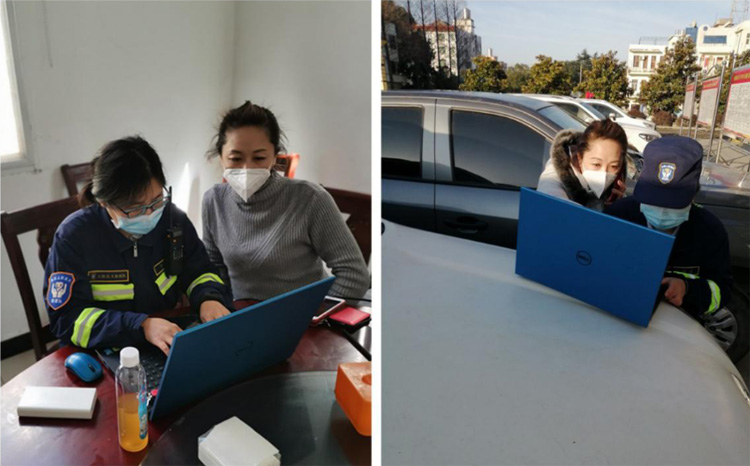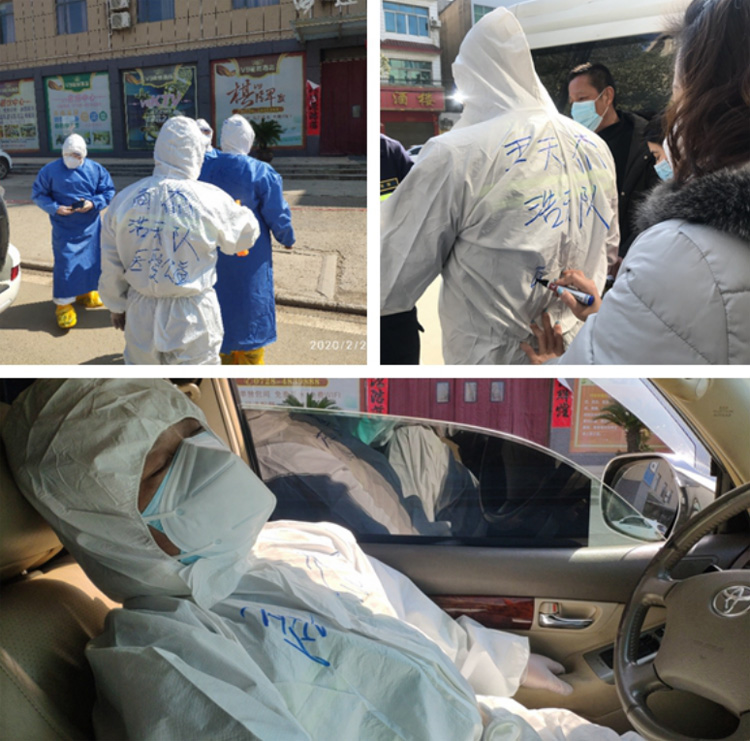 浩天“双杰”穿上防护服,开车带着专家前往疑似留观区。