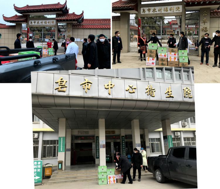 浩天队员驱车带领高博、苗医两位专家前往皂市中心卫生院及福利院捐赠物资。