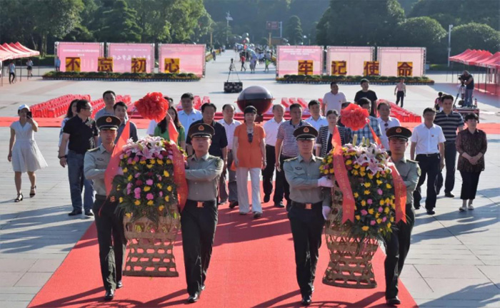 6月26日一大早,毛小青一行首先来到毛泽东铜像广场,举行了敬献花篮仪式。