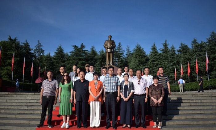 毛小青一行在毛泽东铜像广场前合影。