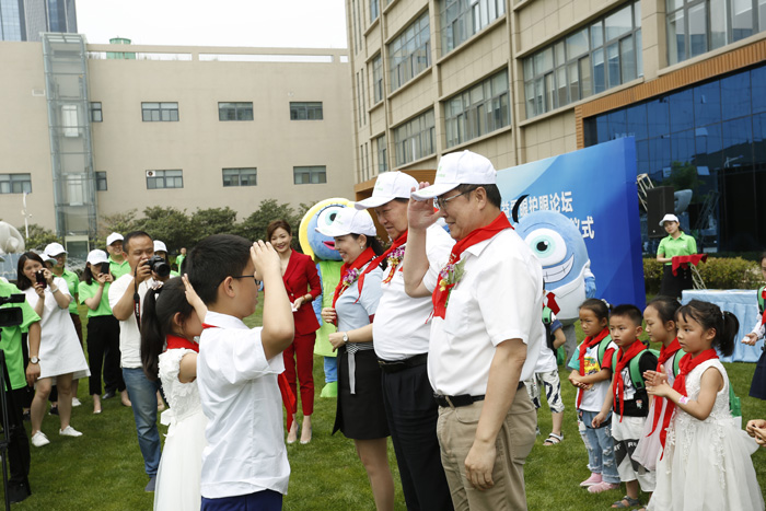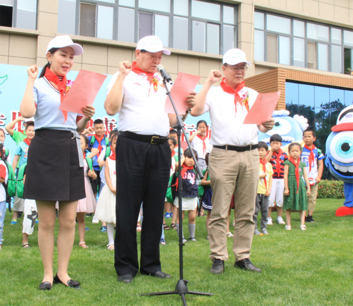 此次公益倡导活动,在3名学生代表为许海峰先生、王宁利教授及美久老师佩戴上红领巾中开始,与现场约30名学生一起进行宣誓,倡导全民护眼,并且表示这是利国利民的好事,许海峰先生也在签名倡导板上留下自己的姓名,用实际行动支持“全民护眼 我们在行动”公益事业。许海峰先生在前边引领誓词,我宣誓:保护眼睛,从我做起!从现在开始,乐善公益,为爱而行,让护眼成为习惯,让眼睛更健康,让世界更美好!