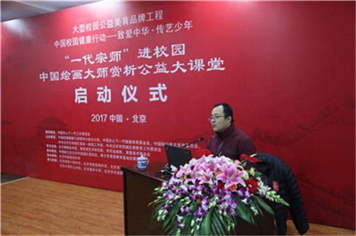 12月20日,由青少年素质教育基地发展基金策划发起,中国关心下一代工作委员会指导,中国校园健康行动领导小组办公室、中国关心下一代健康体育基金会、中国致公党北京市委主办,青少年素质教育基地发展基金联合致公党各级组织共同承办,北京画院美术馆、徐悲鸿艺术研究院、李可染画院、黄胄美术基金会鼎力支持的“‘一代宗师’进校园 中国绘画大师赏析公益大课堂”大型校园公益美育活动,又一次在京城扬帆起航。