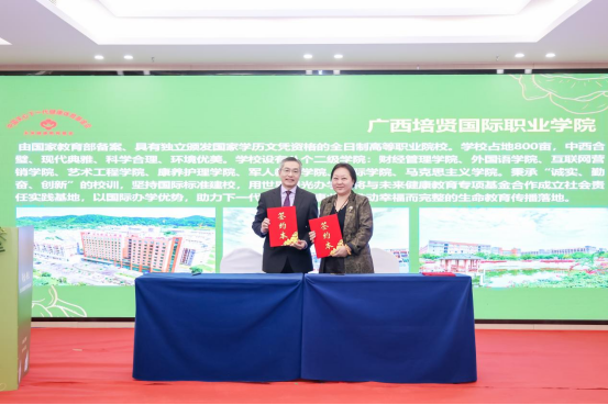 广西培贤国际职业学院为中国关心下一代健康体育基金会-未来健康教育专项基金捐赠人民币100万元,平果县红蓝后勤服务管理有限公司捐赠人民币200万元整,福建智恒氢启健康科技有限公司捐赠一批助学物资,福建乐合实业投资有限公司捐赠荷光共生研学基地5000余平米场所的十年使用权。