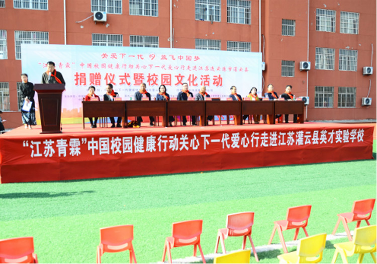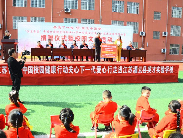 本次爱心行捐赠仪式上,中国关心下一代健康体育基金会爱心行基金携手爱心行企业江苏青霖科技发展有限公司共向灌云县英才实验学校捐赠市场总价948939元的电子学生证、节能净水器等物品1101台。