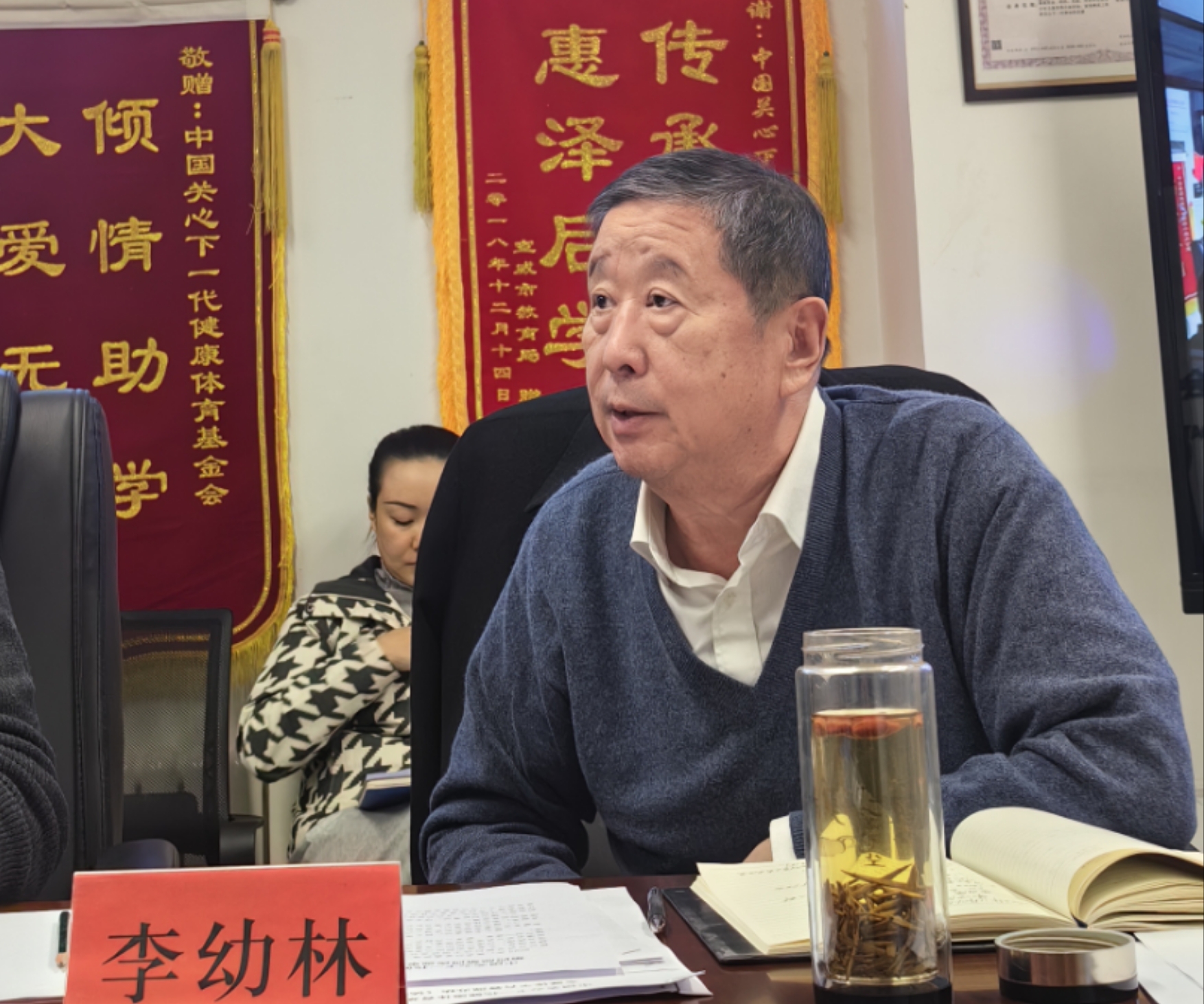 他指出,本会在中国关工委、教育部的指导、支持下,始终以关心下一代为工作宗旨,以促进和帮助儿童青少年德、智、体、美、劳全面发展为工作方向,积极开展相关工作,致力于推动公益慈善事业发展。尤其在这一年,基金会通过加强资金募集、提升专项基金质量,资助和推动涉及教育、体育、科学、医学、公共卫生、公共安全和减灾救灾等方面工作和项目,为儿童青少年事业发展做出了积极贡献。他讲道,本次会议将围绕“加强制度建设、扩大管理机构、表决重大项目”三个主题向理事会提交报告。在制度建设方面,本会在历届理事会议工作中已经议定的共计33项《管理制度》、《办法》基础上,提请新增《中国关心下一代健康体育基金会全媒体运营管理办法》、《中国关心下一代健康体育基金会智库管理办法》等3项制度办法,由理事会议审议表决;在扩大管理机构方面,向理事会提请新增若干理事成员对理事会进行补充扩大,优化驻会人员及部门结构,促进非驻会人员协作等,使基本会的管理更加规范、发展更加健康、决策更加科学;在表决重大项目方面,向理事会报告近一段时期基金会重大捐赠、重大决策、重大事项等工作,提请理事会进行审议表决。